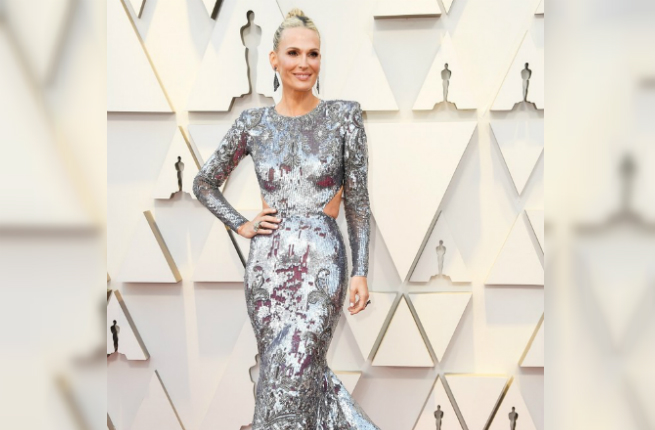 Actress Molly Sims turned it up a few notches with her sparkling silver Zuhair Murad Couture gown. With its train and keyhole opening on the back, it was perfect for one of Hollywood’s most glamorous red carpet affairs.