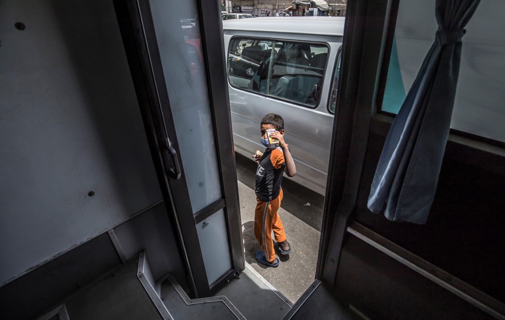 A homeless child leaves one of the mobile units run by the Egyptian authorities and used as part of the "Atfal bala ma'wa" (Children without a home) social program, in the capital Cairo's Abbasia district on June 22, 2020. Khaled DESOUKI / AFP