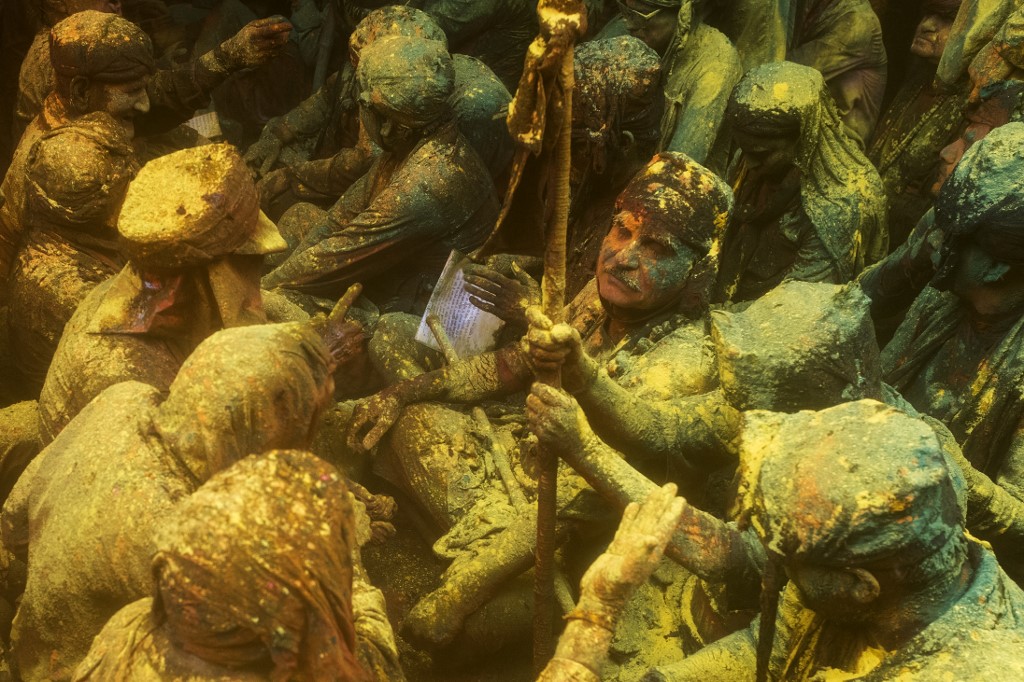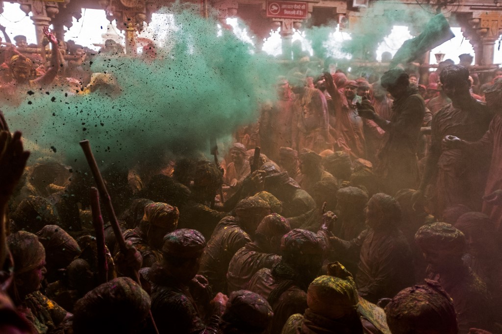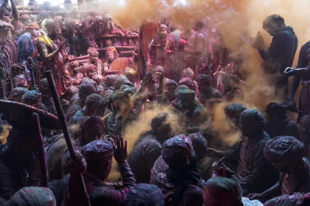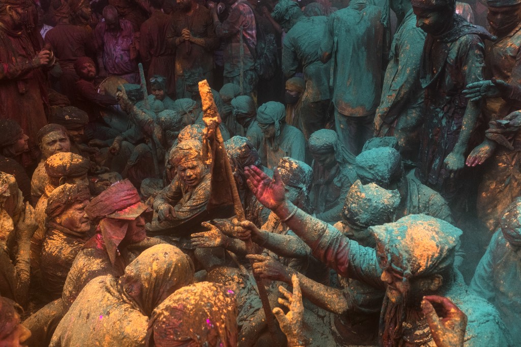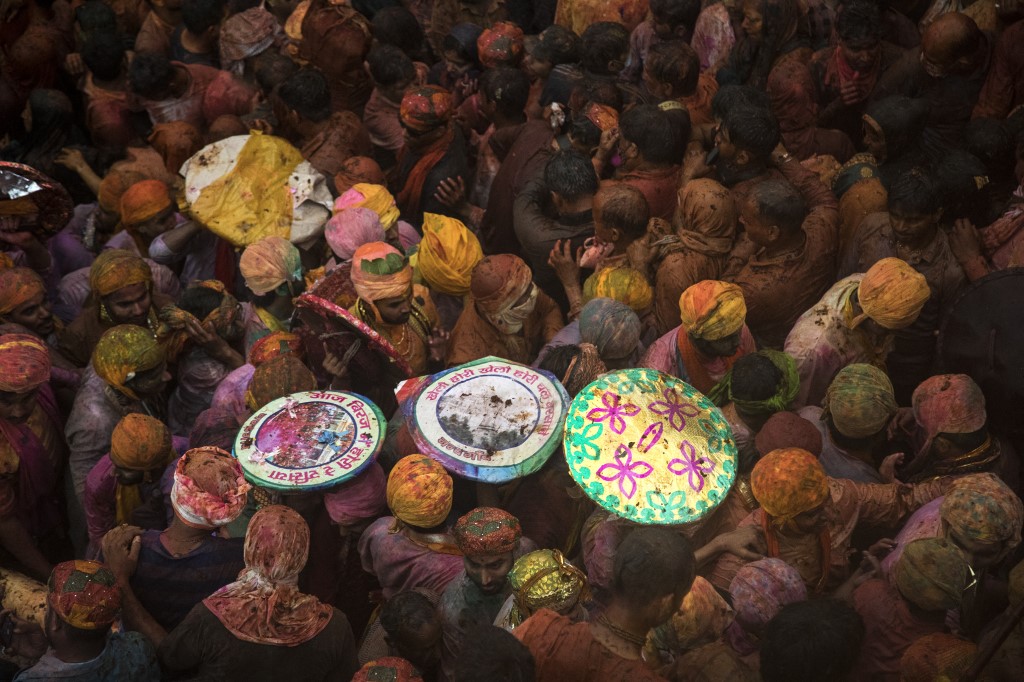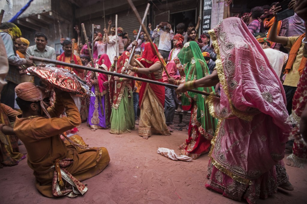The Lathmar Holi festival is celebrated by a large number of men and women despite the rise in COVID-19 infections in India. Festivities usually go on for a week in Mathura and Vrindavan.