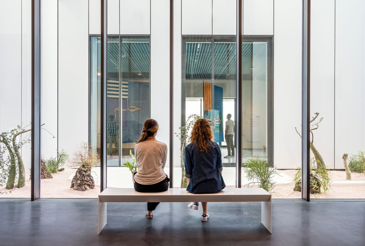 Funded by the private Saudi Arabian organisation Art Jameel, the centre designed by the UK-based firm Serie Architects features a research centre and library, an events space, and an outdoor sculpture area as well as galleries. The series of 7 open-air courtyards represent a distinct desert environment with its own character.