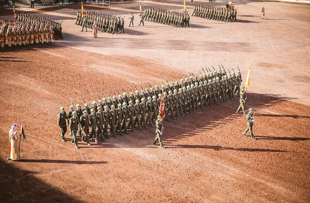 King Abdullah, the Supreme Commander of the Jordan Armed Forces-Arab Army, and Sultan Haji Hassanal Bolkiah of Brunei have attended the annual Flag Parade.