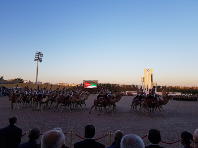 King Abdullah II and Sultan Haji Hassanal Bolkiah of Brunei attend the annual Flag Parade in the Royal Hashemite Court. (@RHCJO/ Twitter)