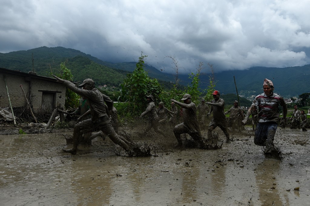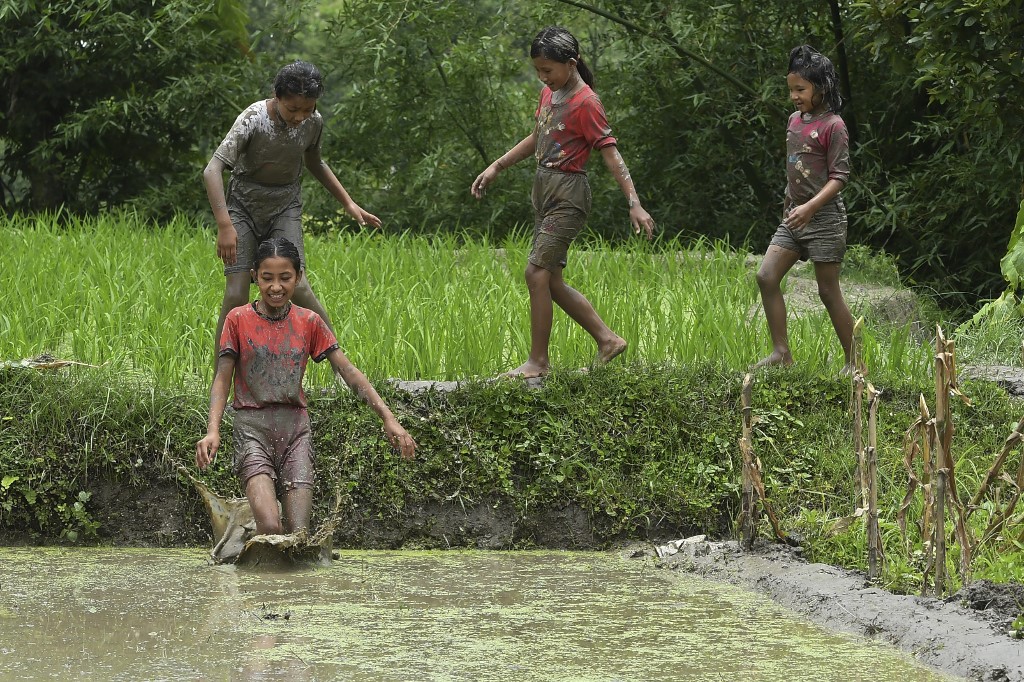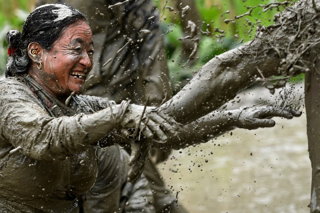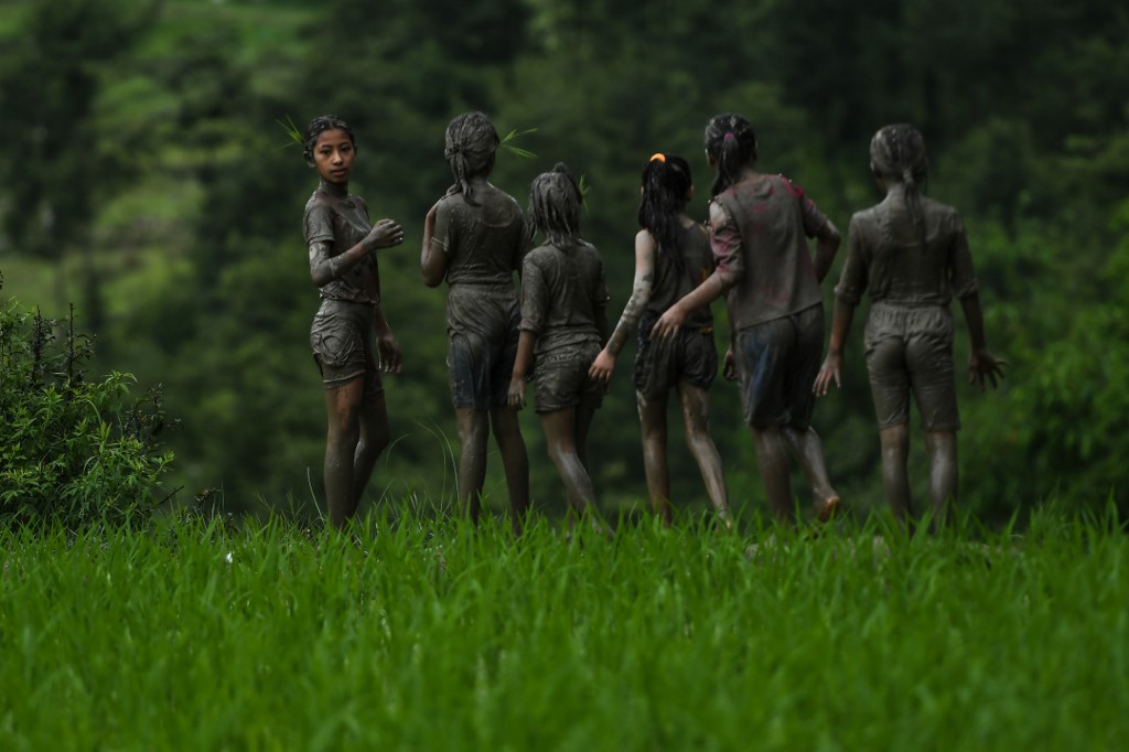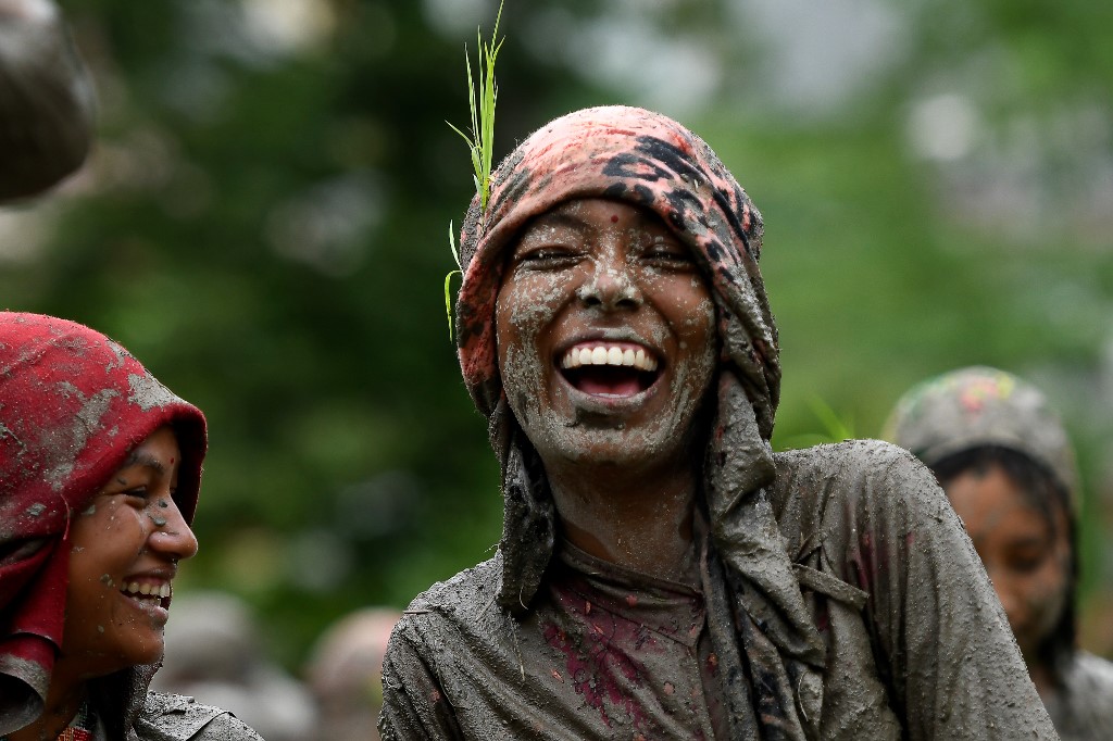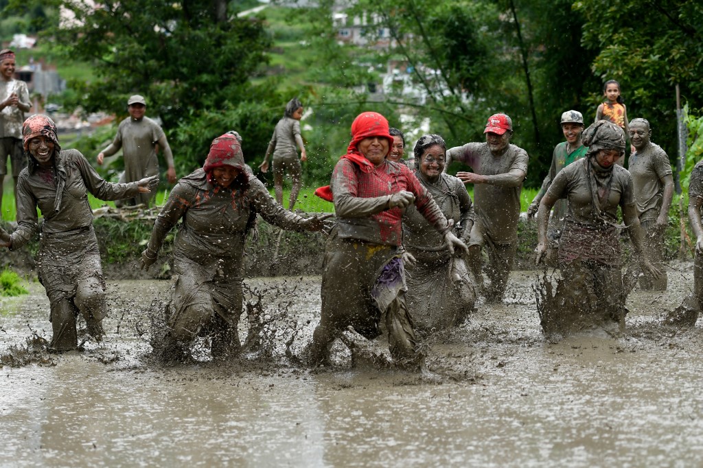 "It is an important day for us. Our family and friends all came together in the fields to plant and have fun," farmer Ramesh Dongol, 35, told AFP.