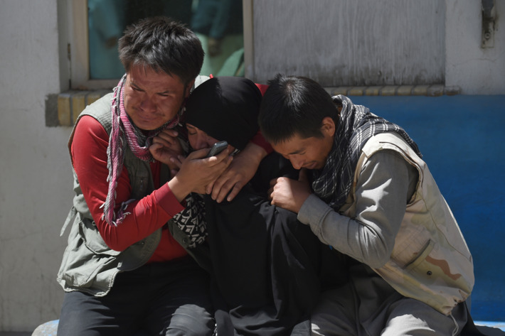Afghan residents weeps for their relatives outside the Istiqlal Hospital in Kabul following the attack. (AFP)