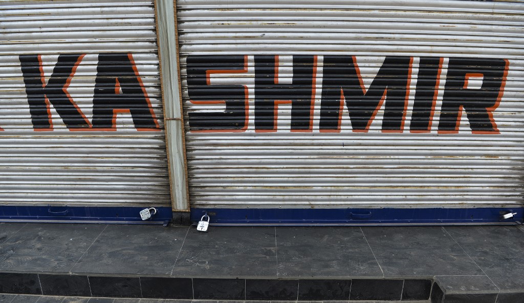 A closed shop is pictured during curfew in Srinagar Sajjad HUSSAIN / AFP