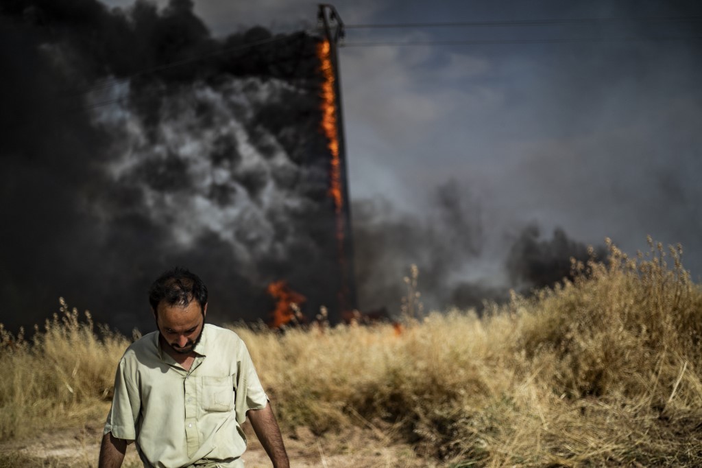 "Fires today engulfed hundreds of hectares of wheat in Tirbespi and the fires are still raging," the head of the Kurdish agriculture authority Salman Bardo said.