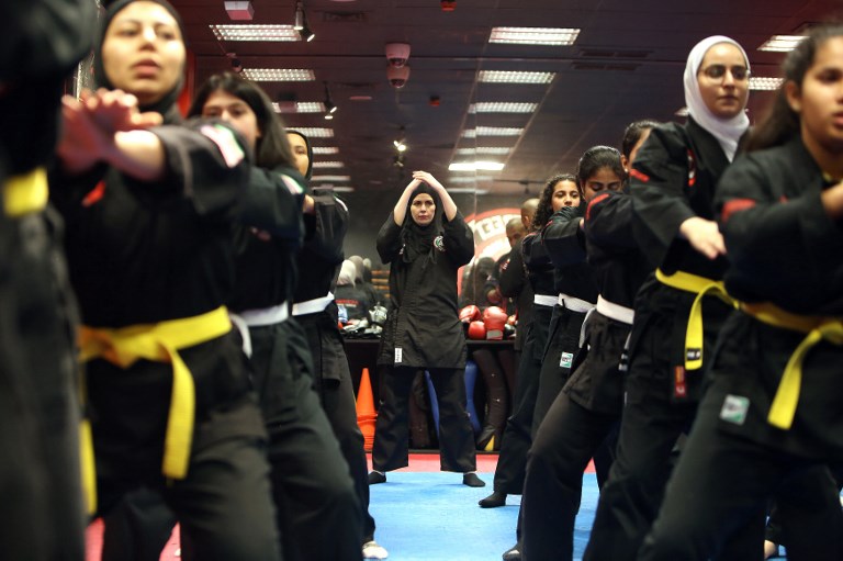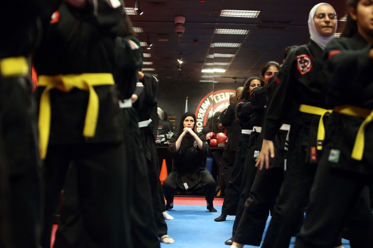 Kuwaiti women practise hybrid martial art Kajukenbo in a club in Kuwait City. Yasser Al-Zayyat / AFP