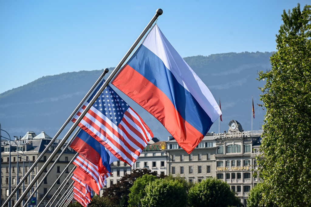 The even-handedness stretched to the layout of flags outside the entrance for when Putin and Biden flanked Swiss President Guy Parmelin for a photograph before the two guests headed in for talks.
