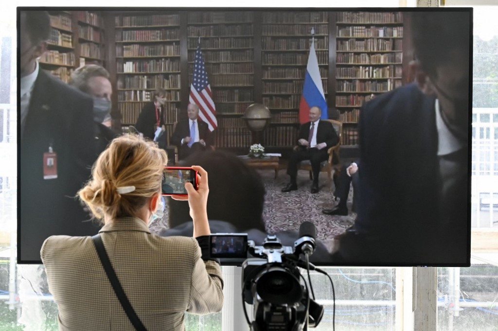 Putin, Biden shook hands for less than four seconds, exchanged a few words, and smiled before heading inside.