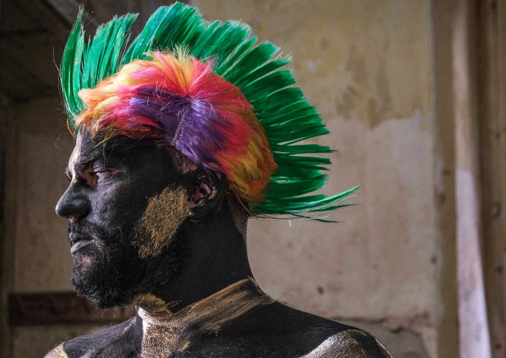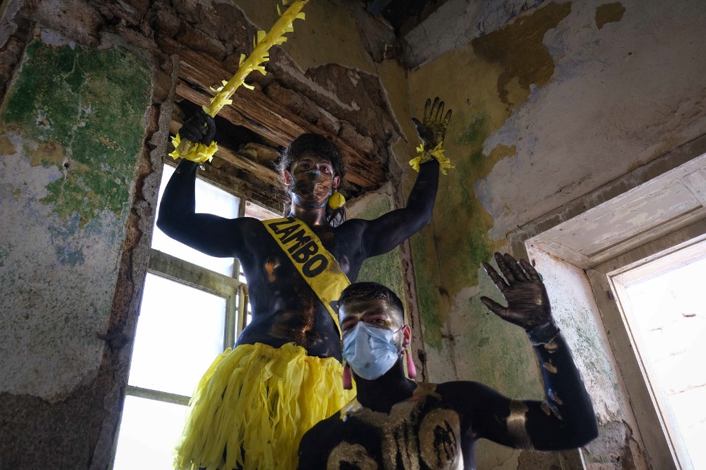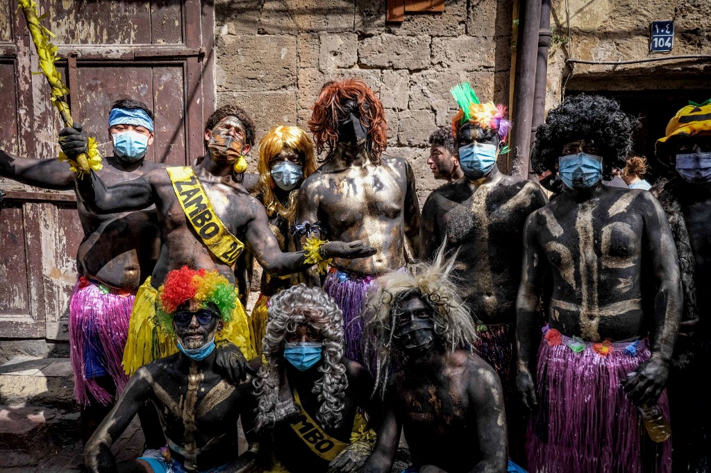 People donned bright, curly wigs and dark body paint for Zambo, a festival on the eve of the start of the Orthodox Christian period of Lent. The origins of the annual celebration remain unclear and it only seems to take place in a seaside suburb of Tripoli, a Muslim-majority city with an Orthodox minority.