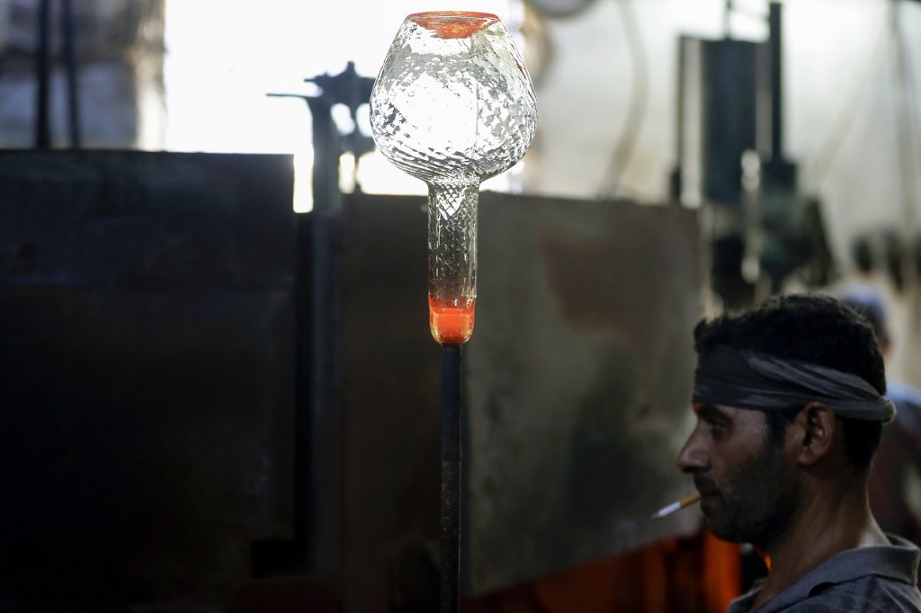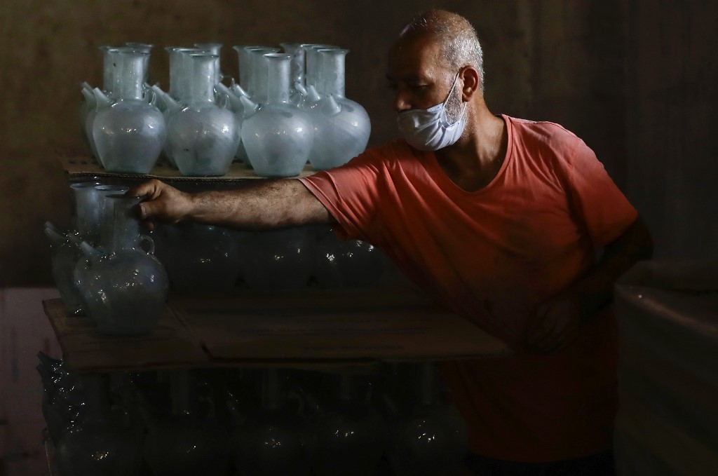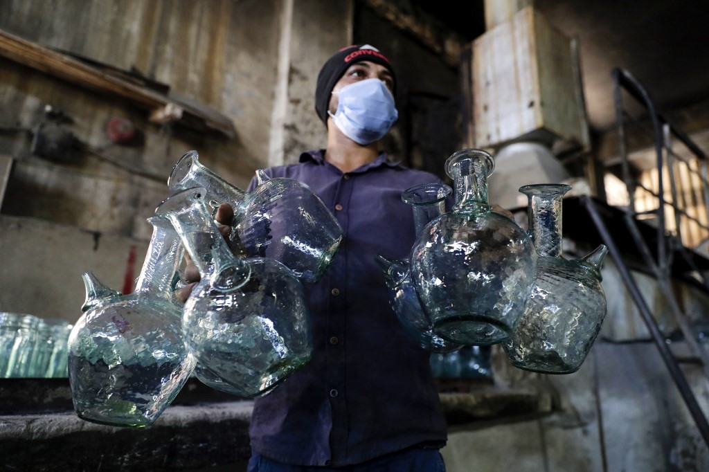 Glass retrieved from Beirut after the massive explosion at its port re-emerged as molten glass ready to be recycled into traditional slim-necked water jugs.