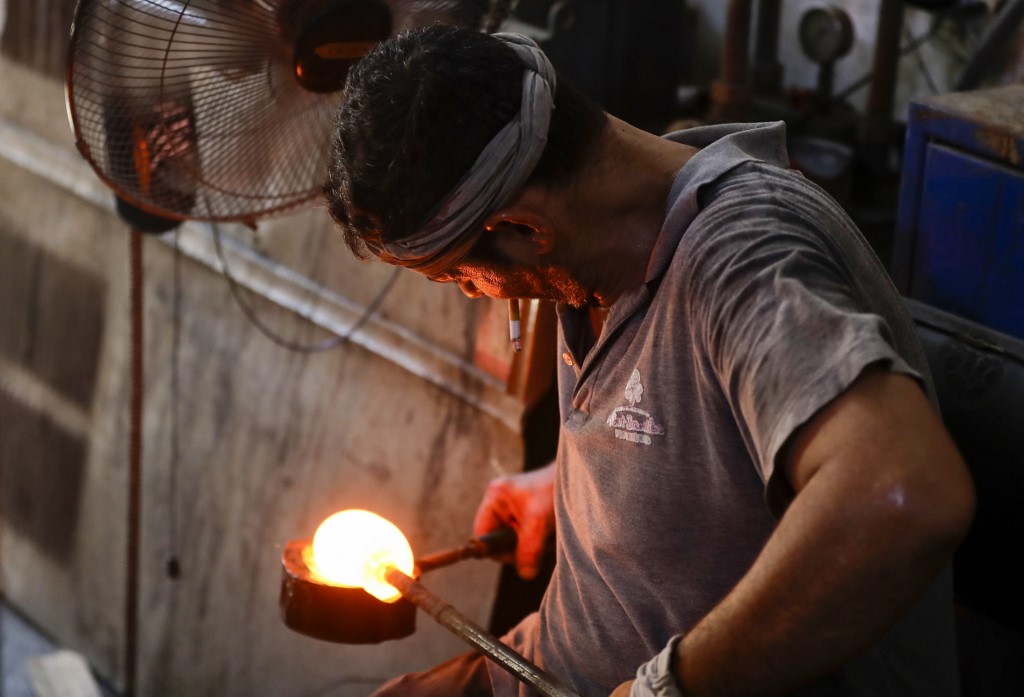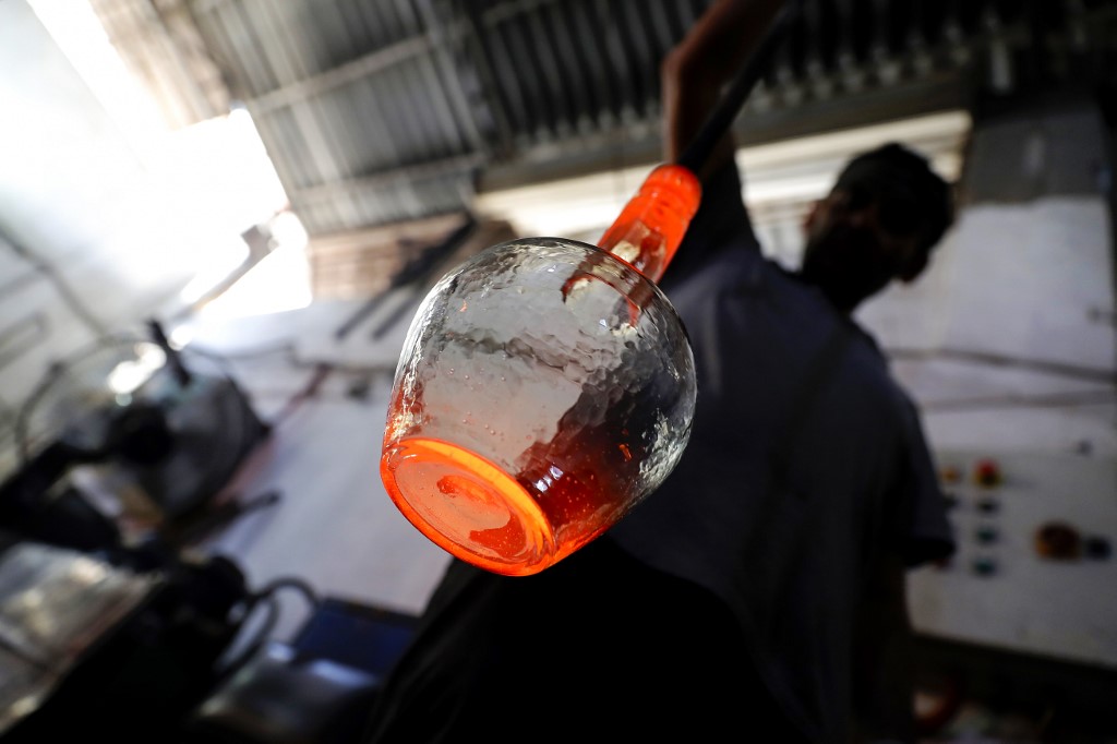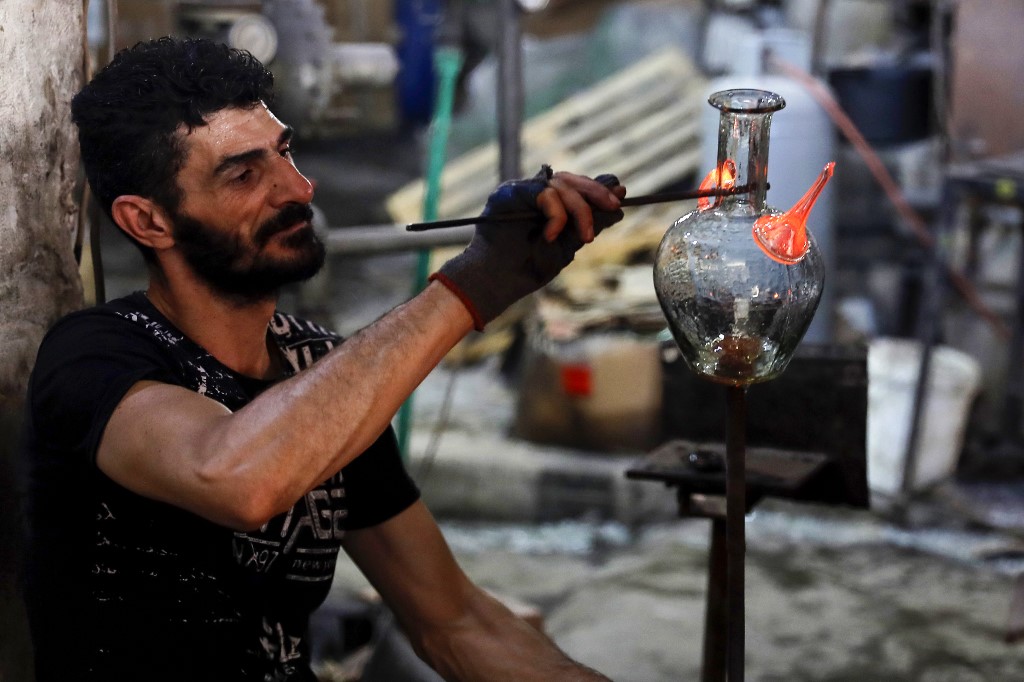 Between 20 and 22 tons of glass had been brought to the factory in Tripoli, a hive of rhythmic activity centered around the furnace that burns at 900-1,200 degrees Celsius.