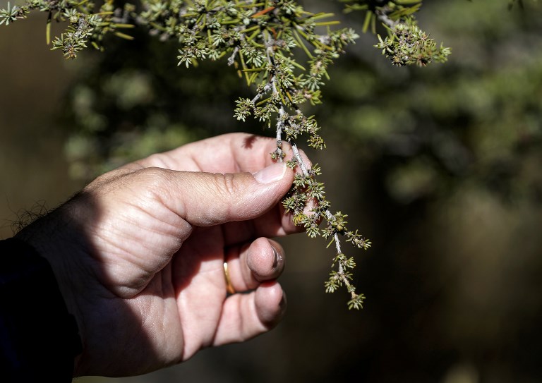 High up in Lebanon's mountains, the lifeless grey trunks of dead cedar trees stand stark in the deep green forest, witnesses to the climate change that has ravaged them.