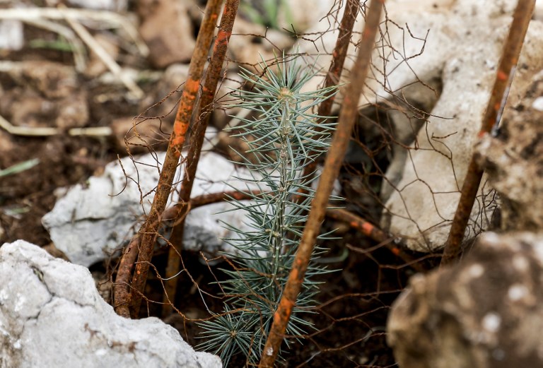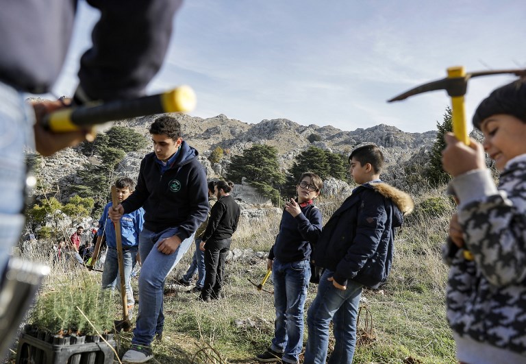 That's why activists from Lebanese NGO Jouzour Loubnan gather to plant young cedars on the slopes of the Jaj Cedar Reserve Forest in the Lebanon mountains, northeast of the capital Beirut in a joint initiative in partnernship with the Lebanese Army to mark the 75th anniversary of the country's independence.