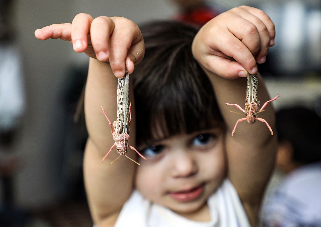 After becoming airborne, swarms of tens of millions of locusts can fly up to 150 km a day with the wind. Desert Locusts live about three months, and a female locust lays about 300 eggs. A very small swarm eats the same amount of food in one day as about 35 000 people.