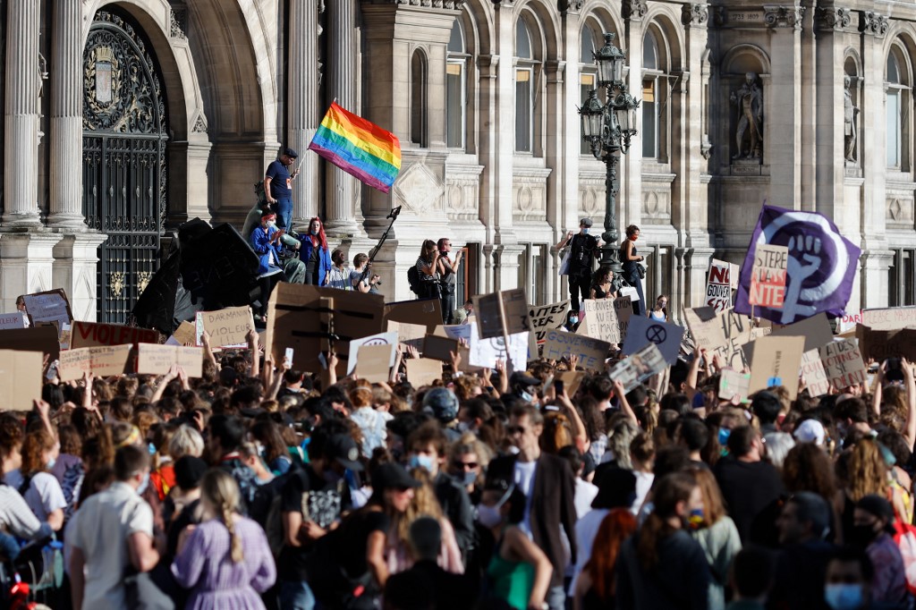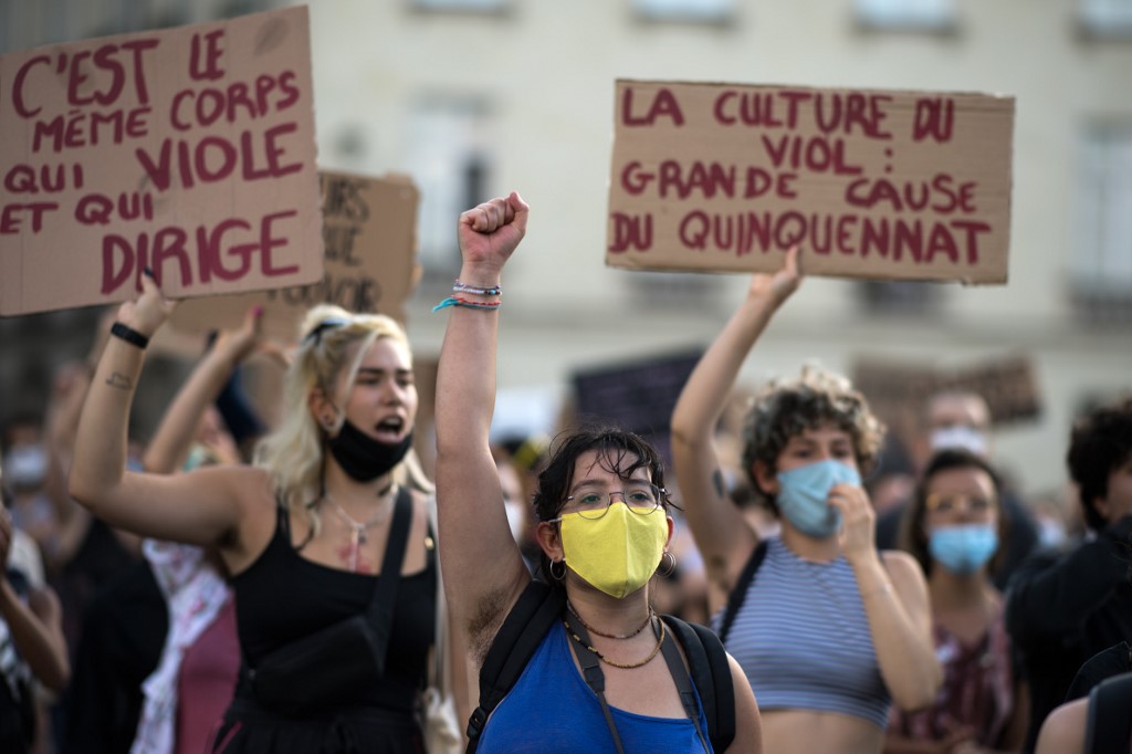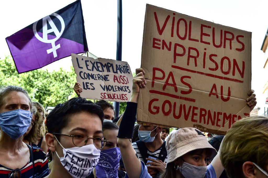 The protesters rallied in Paris, Bordeaux, Lyon, Toulouse and other cities with slogans denouncing "the culture of rape On the Move" a reference to the name of President Emmanuel Macron's ruling party The Republic on the Move (LREM).