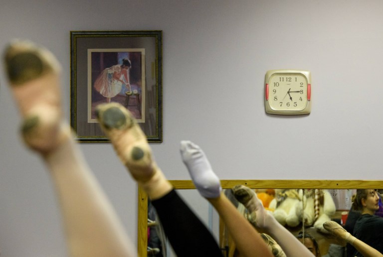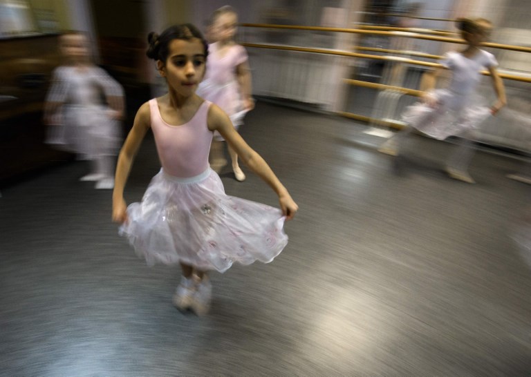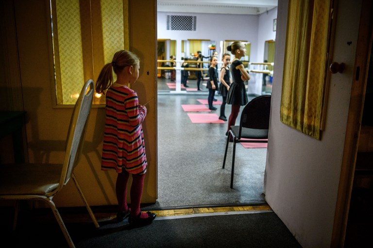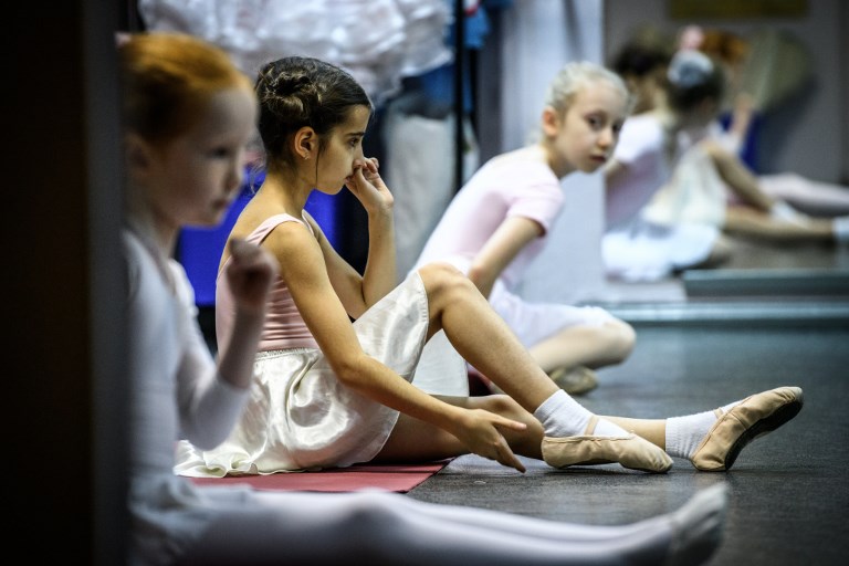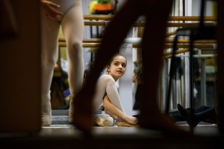 A girl attends a class at a ballet studio in Moscow on November 22, 2018. In a small studio in northern Moscow, parents and grandparents sit in a corridor waiting for children as young as three to finish their ballet class. Mladen ANTONOV / AFP