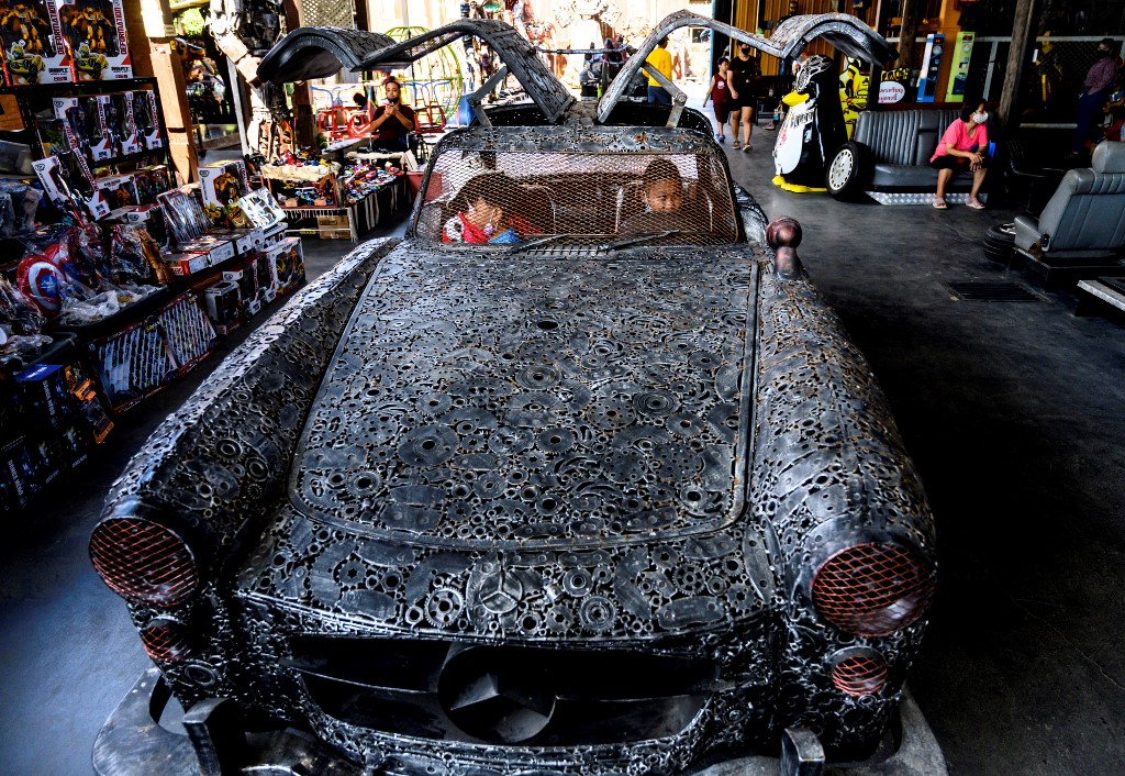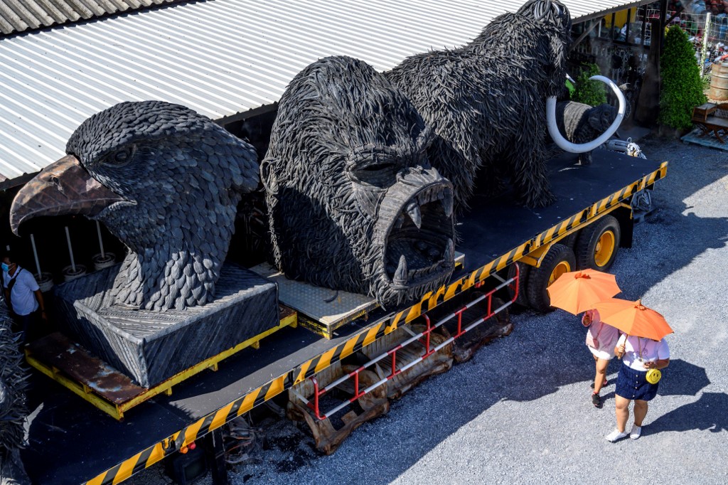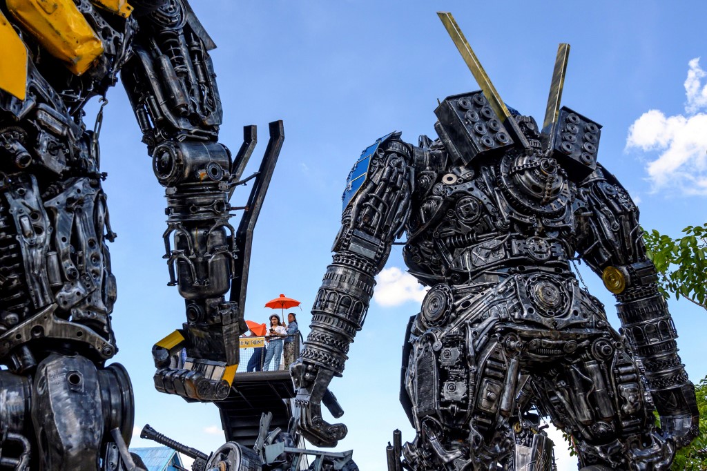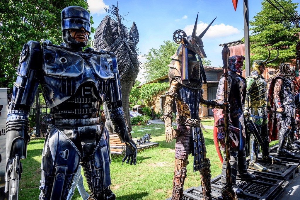 Visitors to Phairote Thanomwong's welding workshop gaze up at eight-metre-high sculptures modelled after the robots of the Transformers franchise and a jet-black King Kong hewn together from old car parts.