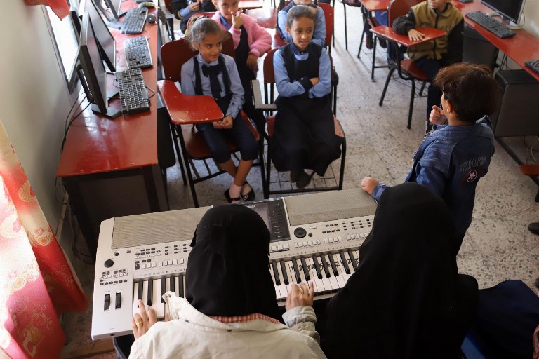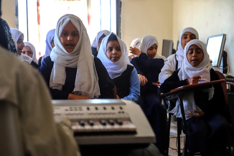 When it reopened its doors, the walls was still pockmarked with bullet holes, educators decided to expand the music programme, making it part of the core curriculum alongside maths and Arabic with the hope it would restore joy to their students' days.