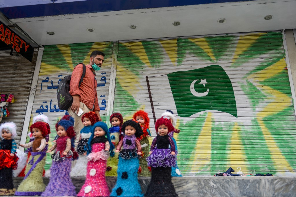 A man walks past a shuttered market in Rawalpindi on July 29, 2020, after the Punjab province government announced a lockdown closing markets, shopping malls and plazas to contain the spread of the COVID-19 coronavirus on the occasion of the Muslim festival Eid al-Adha or the 'Festival of Sacrifice'. Farooq NAEEM / AFP