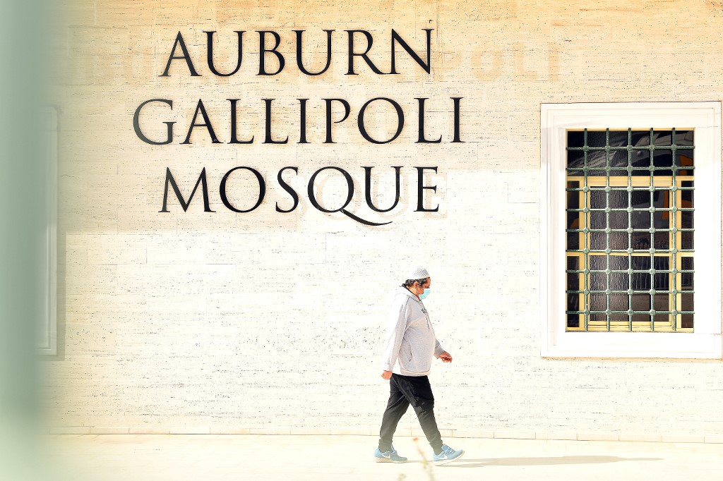 A Muslim worshipper leaves Auburn Gallipoli Mosque after mass Friday prayer on the first day of the Eid al-Adha festival in Sydney on July 31, 2020. Muslims in Australia offered their Eid Al-Adha and Friday prayers inside the mosques with limitations and restrictions to halt the spread of the COVID-19 coronavirus as the country recorded over 16,000 coronavirus cases and 189 deaths in a population of 25 million. SAEED KHAN / AFP