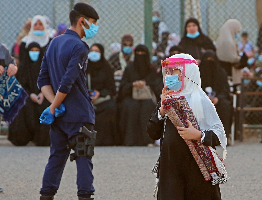 Muslims worshippers perform prayers at a stadium in Bayan district in Kuwait City on July 31, 2020 on the first day of Eid al-Adha. Eid al-Adha (the Festival of Sacrifice) is celebrated throughout the Muslim world as a commemoration of Abraham's willingness to sacrifice his son for God, and cows, camels, goats and sheep are traditionally slaughtered on the holiest day YASSER AL-ZAYYAT / AFP