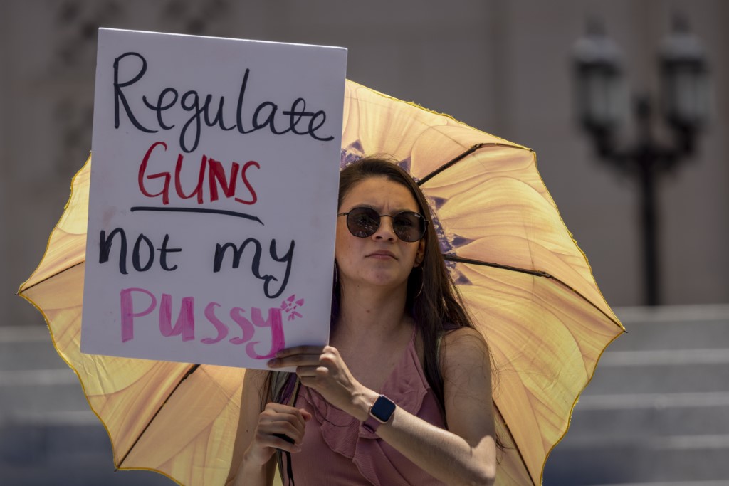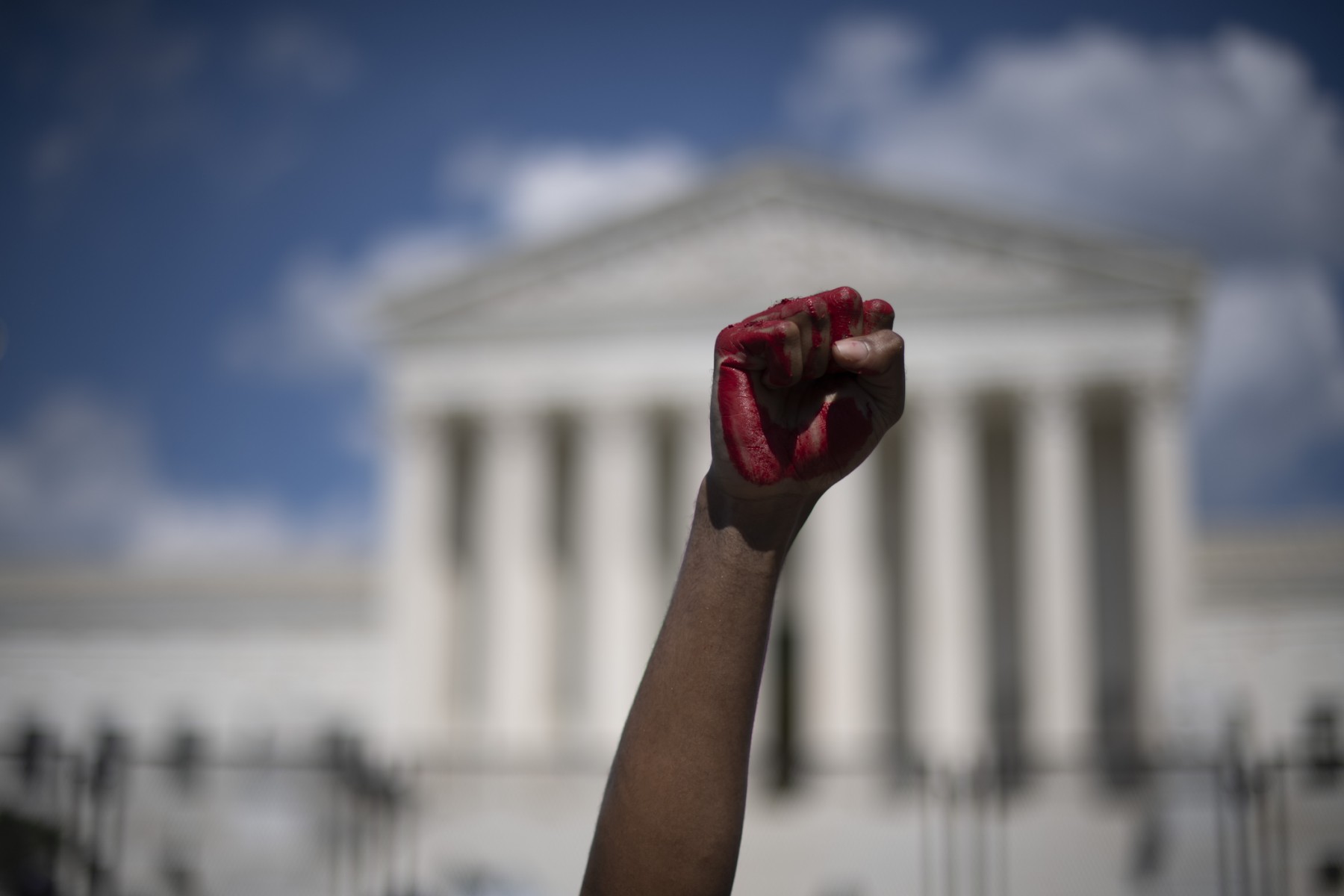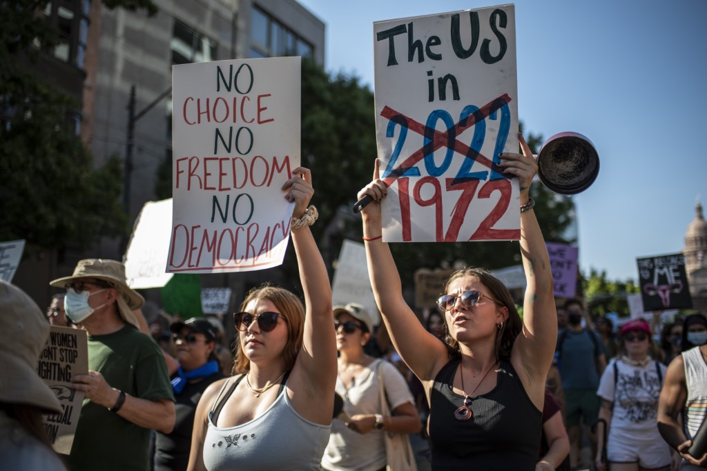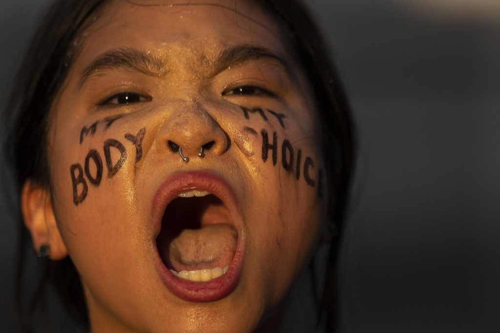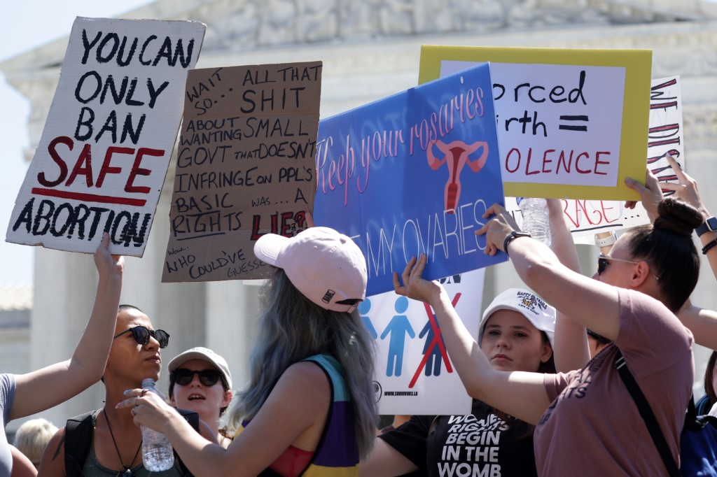 A few thousand people held a demonstration outside Supreme Court in Washington carrying signs that read "War on women, who's next?" and "No uterus, No opinion." Other protesters also shouted slogans including: 'My Body, My Choice, and You Can Only Ban Safe Abortion.'