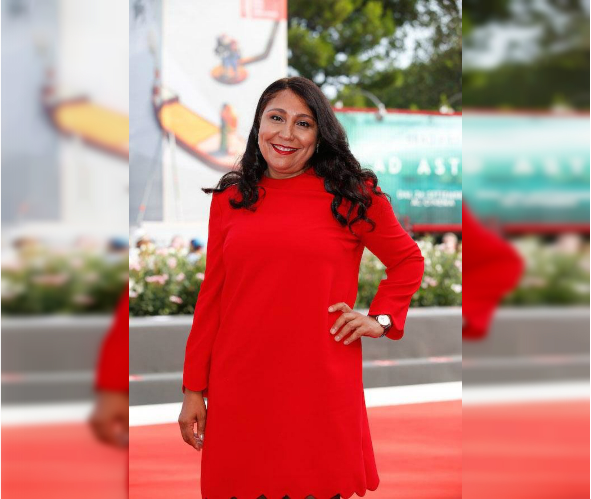 Saudi director Haifa Al Mansour wore a red dress by Jaeger-LeCoultre