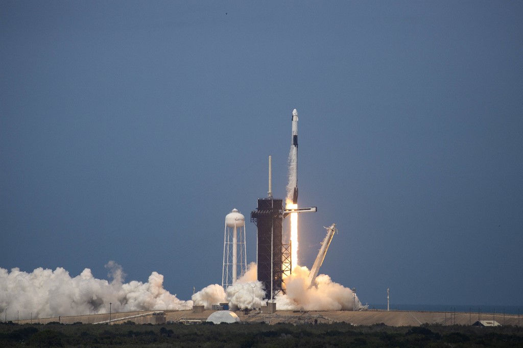 A SpaceX Falcon 9 rocket carrying the Crew Dragon spacecraft lifts off from launch complex 39A at the Kennedy Space Center in Florida on May 30, 2020. NASA astronauts Hurley and Bob Behnken are set to depart for an extended stay at the International Space Station on the SpaceX Demo-2 mission. Gregg Newton / AFP