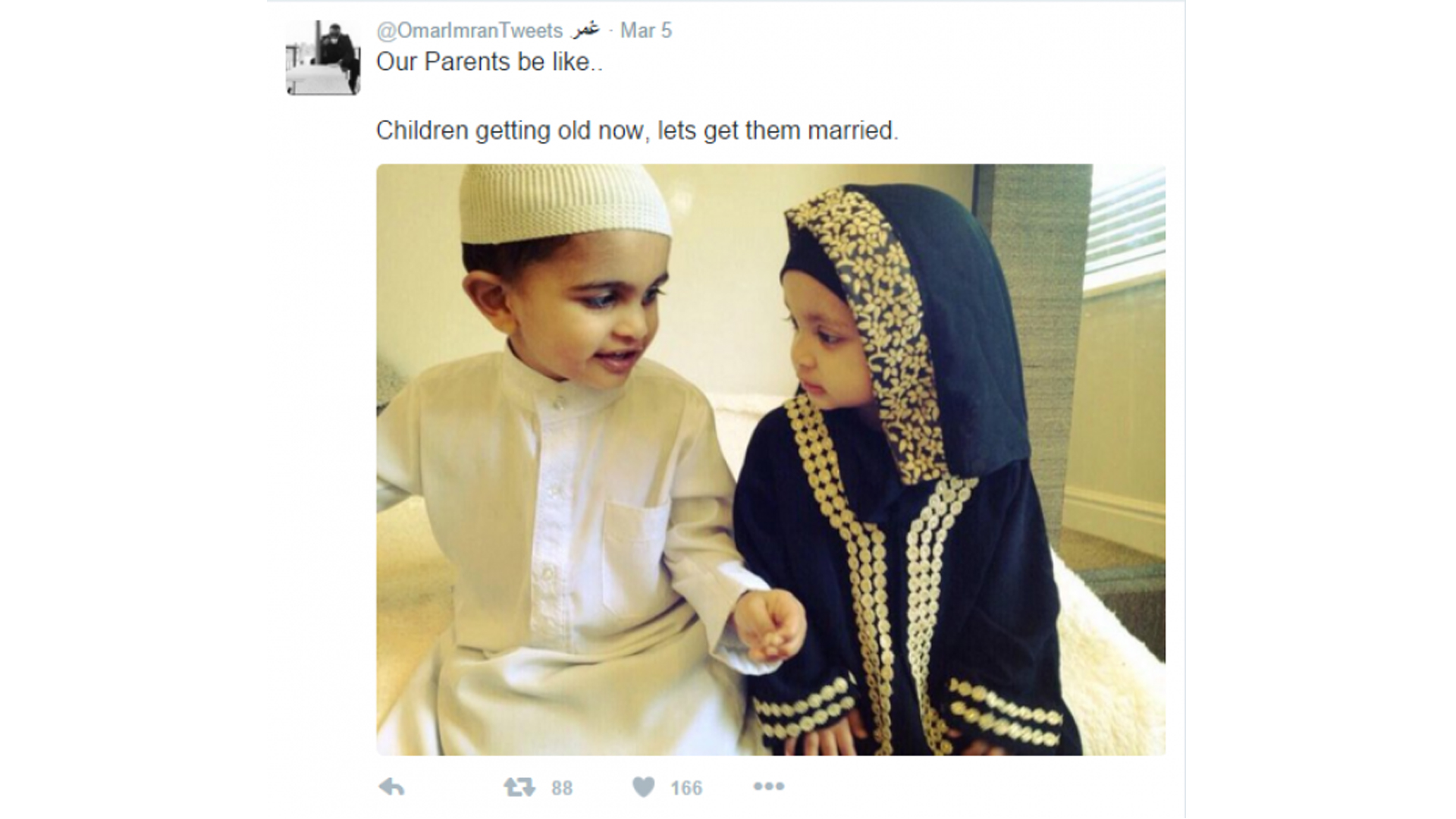 "Our Parents be like..." is a frequent riff. Imran also spoofs Islamic engagement rituals, marriage proposals, and relationships in general, while carefully concealing his own romantic status.
