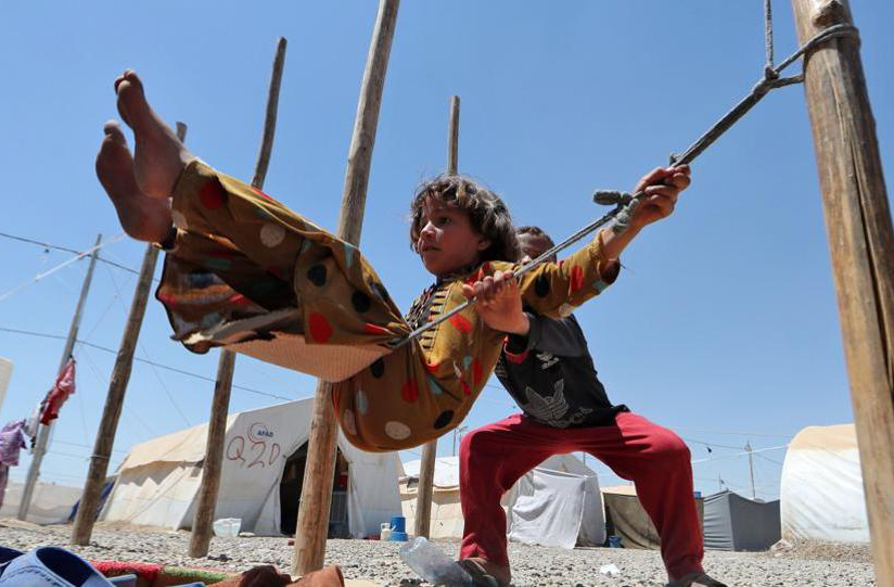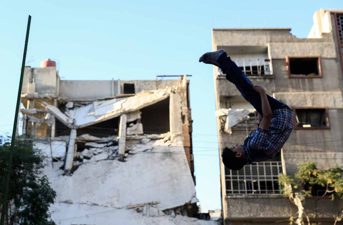 Two children playing on their bikes in the ruins of the Shaar district, Aleppo. The battle for Aleppo, which ended with the Syrian government’s recapture of city in December 2016, was one of the most devastating battles in the Syrian civil war. It left around 31,000 people dead, displaced thousands and caused severe damages to the old city.