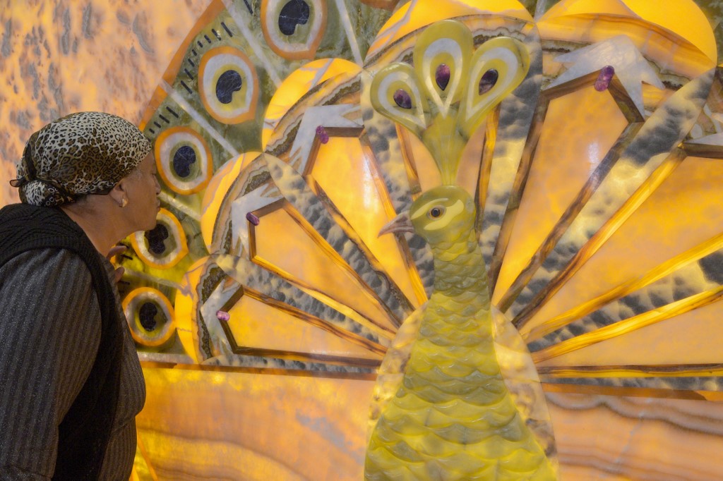 The new Yazidi Temple in the village of Aknalich, 35 kilometres from the Armenian capital Yerevan, on October 11, 2019 Worshippers kiss the marble walls and gaze at an ornate peacock inlaid with multi-coloured stones inside the world's largest Yazidi temple, which has opened in Armenia.  KAREN MINASYAN / AFP