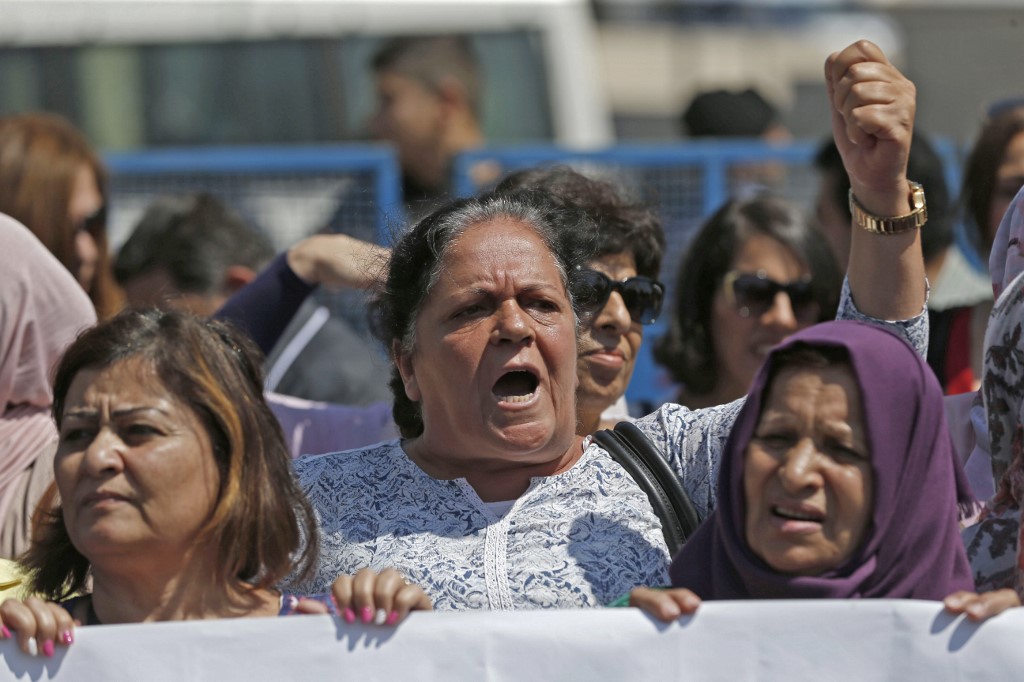 Palestinian women protest in support of women’s rights outside the prime minister’s office in the West Bank city of Ramallah on September 2, 2019, after a young Palestinian died in a case that has raised emotions. ABBAS MOMANI / AFP