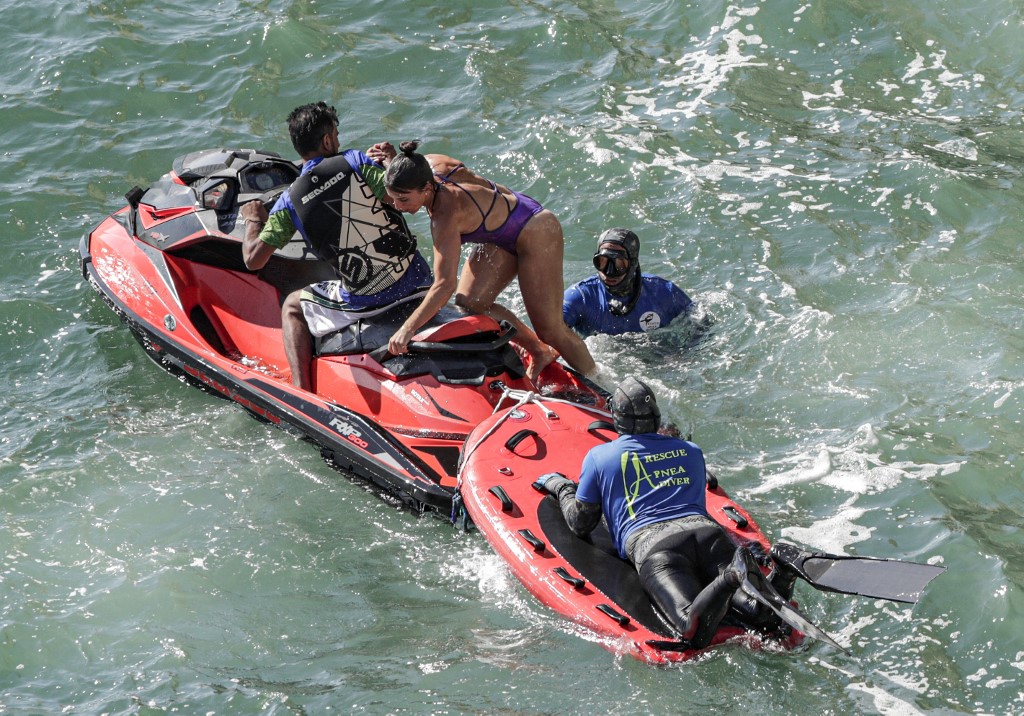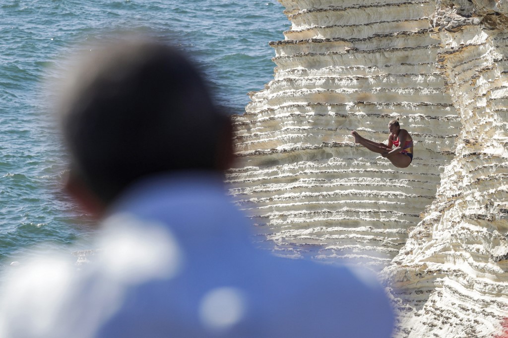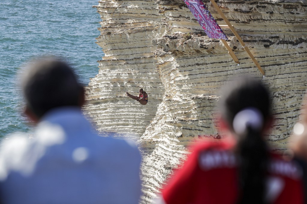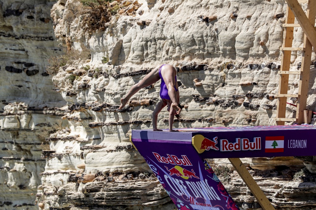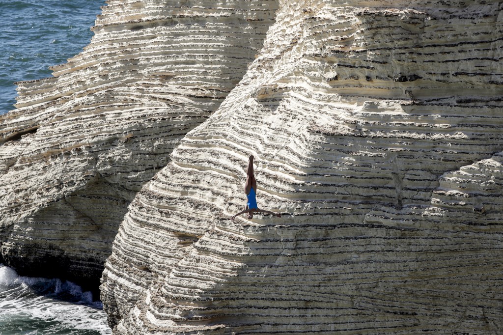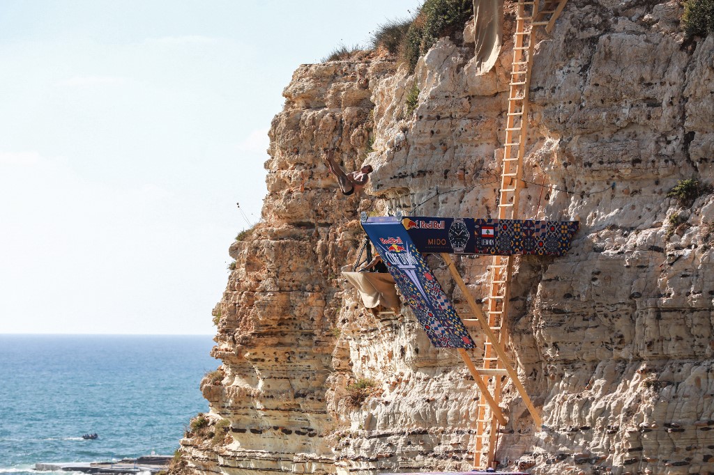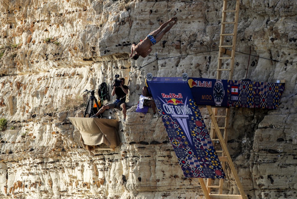 In Lebanon, platforms were set up on the side of the rock formation, and divers jumped from as high as 27 meters into the sea below.