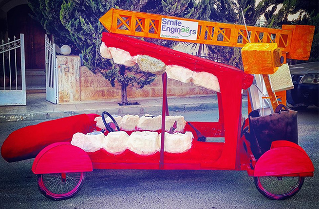 A pair of dentists teamed up with two civil engineers, and - with the help of a student - created this gaping jaw of a vehicle. Team "Smile Engineers" built a tooth-filled go-cart with an enormous red tongue. Guess they plan to lick the competition?