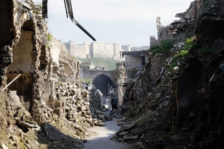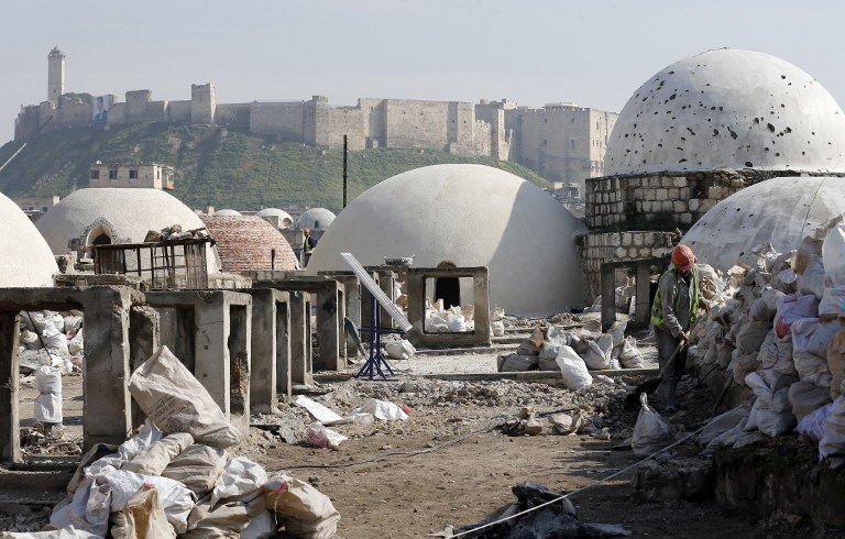 A general view shows the Saqatiya market, during restoration, and the Citadel of Aleppo, in the old quarter of Syria's second city of Aleppo LOUAI BESHARA / AFP
