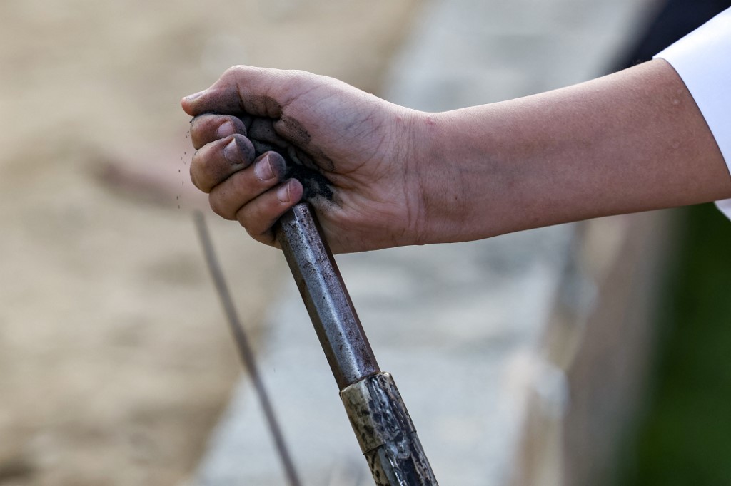 The ancient war dance in Taif, a city located west of Saudi Arabia, works as men use gun flame lightened under their feet while dancing in the center.
