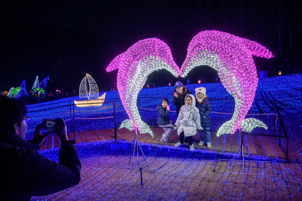 In a photo taken on January 11, 2020 visitors look at an annual light display at the 'Garden on Morning Calm', near Gapyeong, east of Seoul.