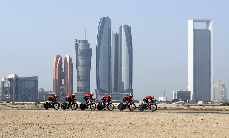 Published February 24th, 2019 - 06:27 GMT Team Bahrain Merida competes during the first stage of the UAE tour in Abu Dhabi on February 24, 2019.GIUSEPPE CACACE / AFP View as a slider View as a list Team Bahrain Merida competes during the first stage of the UAE tour in Abu Dhabi on February 24, 2019. GIUSEPPE CACACE / AFP Team Bahrain Merida competes during the first stage of the UAE tour in Abu Dhabi on February 24, 2019. GIUSEPPE CACACE / AFP You may also like Subscribe Sign up to our newsletter for exclusive updates and enhanced content Subscribe Now Subscribe Sign up to get Al Bawaba's exclusive celeb scoops and entertainment news LatestPopular Oil Price Market Outlook (6–12 Months): Scenario Probabilities and Trading Ranges Kylie Jenner poses topless in daring Vanity Fair photoshoot Israeli airstrike hits Beirut university, killing two professors 3 injured in Old Dominion University shooting Two U.S. sailors injured in fire aboard USS Gerald R. Ford Loading content ...
