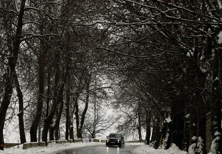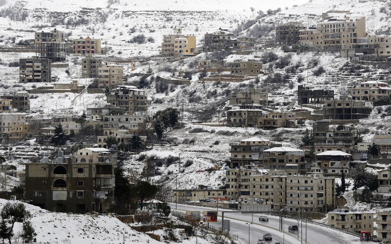 Street in the village of Sofar, some 30 kilometres (20 miles) east of the Lebanese capital Beirut, covered in snow as a fierce winter storm lashed the east coast of the Mediterranean. JOSEPH EID / AFP