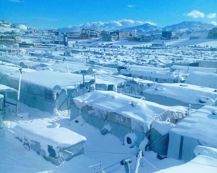 Syrian refugees’ camp in Irsal swamped by snow after storm  hit Lebanon (Twitter)