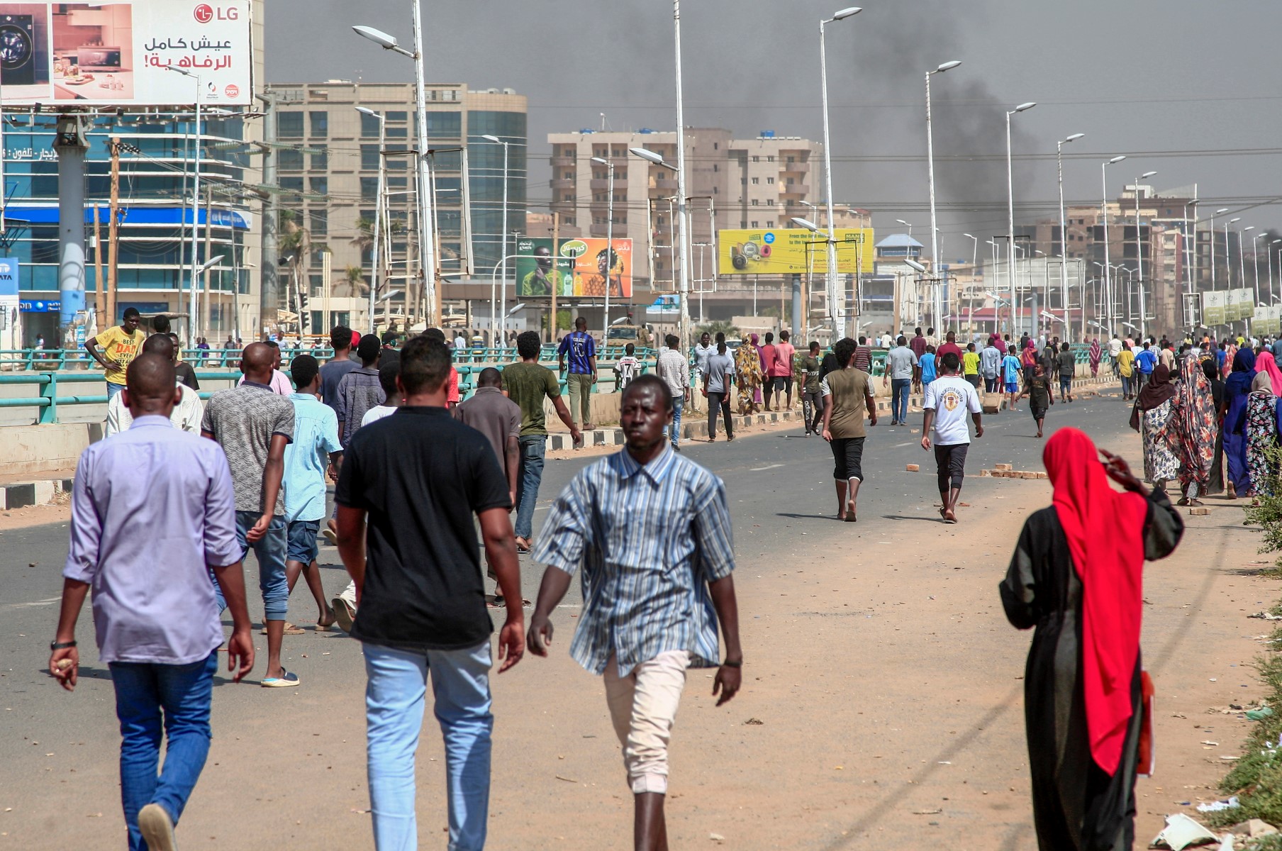 Sudanese people protest against a military coup that overthrew the transition to civilian rule, on October 25, 2021 in the capital Khartoum's twin city of Omdurman. Sudan's top general declared a state of emergency and dissolved the authorities leading the country's democratic transition, after soldiers detained civilian leaders in what the UN condemned as a "coup". (Photo by AFP)
