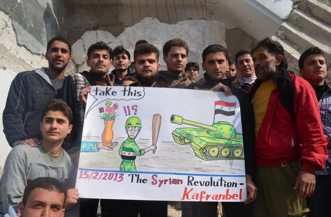 With the U.S. refusing to provide arms for the Syrian opposition but endorsing their political coalition, the boys of Kafranbel have got a little confused. Mixed signals they may be but they’re also playing with Syrians’ lives.