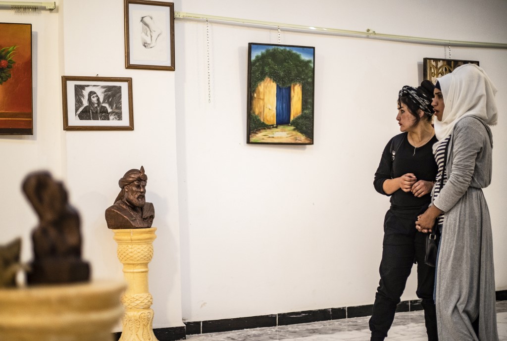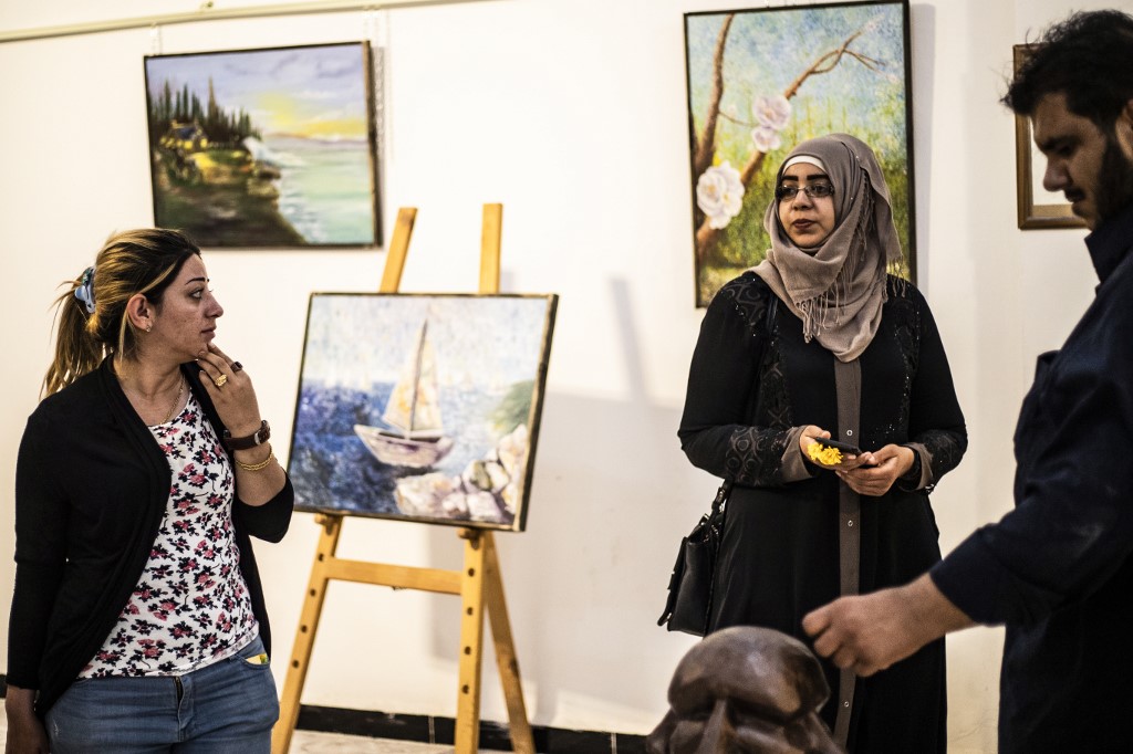 Moreover, the Raqqa Center for Arts and Culture has also paintings hung beside charcoal drawings, with sculptures of human figures.