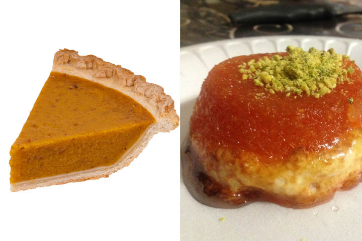 Pumpkin baklava, not pumpkin pie. When traveling in the Middle East we’re happy to trade in pies for baklava and kanafa, but Thanksgiving without Grandma’s homemade pecan or apple pie is a grim prospect. That said, honey, pistachios, and pumpkin doesn’t sound like that bad a combination ... or Turkish delight, anybody?