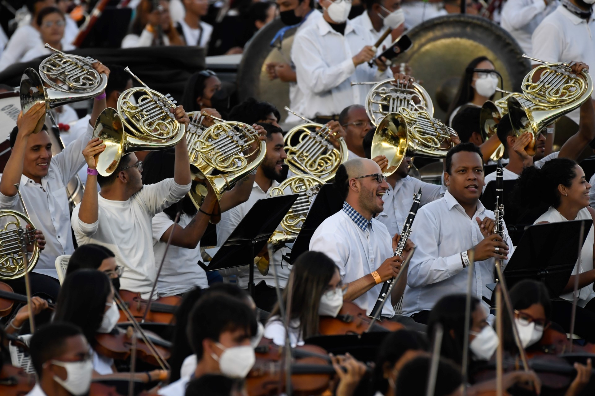 The musicians, who participated in the world record Orchestra, were brought together by the country's publicly funded "El Sistema" program.