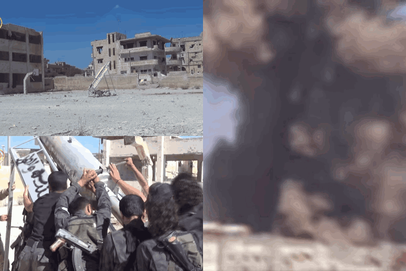 The “Qa’Qa’ rocket” is just one of many improvised rocket-assisted munitions (IRAMs) being used in the conflict. First introduced in the Southern Front’s offensive on the regime-held parts of Daraa, the Qa’Qa’ rocket is notable for its recent introduction and the fact that it takes seven able-bodied young men to move.