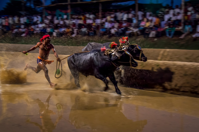 A kambala is an annual buffalo race held in the southwestern Indian state of Karnataka. Traditionally, it is sponsored by local Tuluva landlords and households.