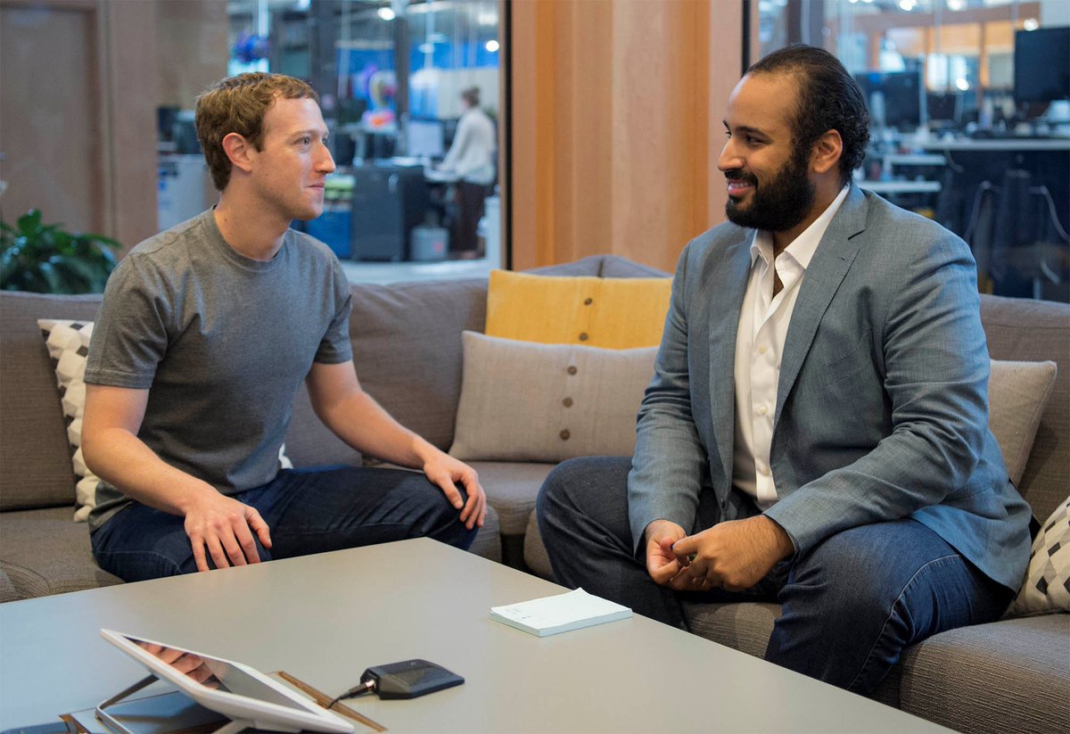 Saudi Deputy Crown Prince Mohammed bin Salman meets Facebook founder Mark Zuckerberg at the tech giant's headquarters in Silicon Valley (Twitter)