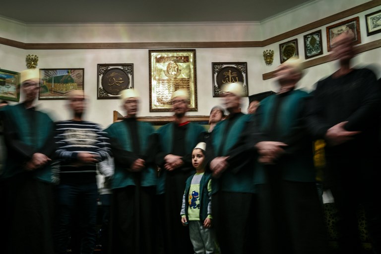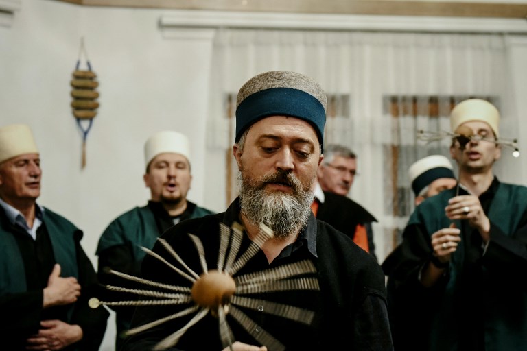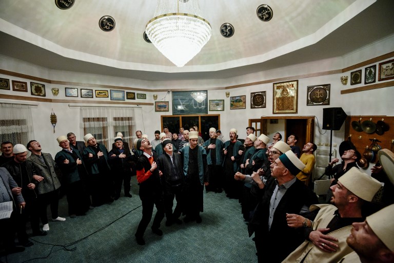 Kosovo Dervishes, adepts of Sufism, a mystical form of Islam, attend a ceremony in a prayer room in Gjakova.